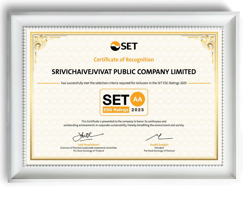SET ESG Ratings ระดับ “AA” ประจำปี 2568บริษัท ศรีวิชัยเวชวิวัฒน์ จำกัด (มหาชน) หรือ VIH ผู้ดำเนินธุรกิจโรงพยาบาลในกลุ่มศรีวิชัย ภูมิใจที่ได้รับการคัดเลือกให้อยู่ในรายชื่อหุ้นยั่งยืน หรือ SET ESG Ratings ประจำปี 2568 ในระดับ “AA” (คะแนนรวม 80-89) จากตลาดหลักทรัพย์แห่งประเทศไทย ซึ่งเป็นการยกระดับจากเรตติ้ง “A” ในปีที่ผ่านมา แสดงให้เห็นถึงพัฒนาการที่สำคัญและความมุ่งมั่นในการยกระดับมาตรฐานการดำเนินงานอย่างเป็นรูปธรรม