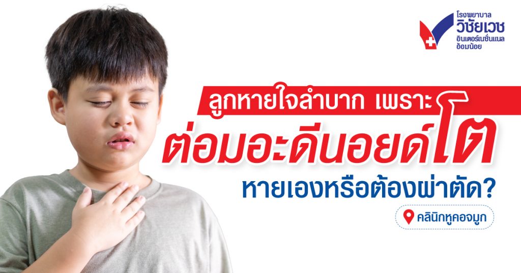 หากคุณกังวลว่าลูกอาจมีภาวะต่อมอะดีนอยด์โต อย่ารอให้เกิดภาวะแทรกซ้อน มาปรึกษาและตรวจวินิจฉัยกับแพทย์ผู้เชี่ยวชาญด้านหู คอ จมูก และกุมารแพทย์ได้ที่ โรงพยาบาลวิชัยเวชฯ อ้อมน้อย เราพร้อมดูแลด้วยทีมแพทย์เฉพาะทางและเครื่องมือมาตรฐานสากล