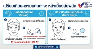 หลายครั้งที่ผู้ป่วยมีอาการหน้าเบี้ยวหรือมุมปากตก แล้วเกิดความตื่นตระหนกว่าตนเองเป็นโรคหลอดเลือดสมองหรือไม่ แท้จริงแล้ว อาการหน้าเบี้ยวอาจเกิดจาก โรคหลอดเลือดสมอง (Stroke) หรือ โรคเส้นประสาทใบหน้าอักเสบ (Bell’s Palsy) ก็ได้ ซึ่งมีความรุนแรงและแนวทางการรักษาที่แตกต่างกันอย่างสิ้นเชิง