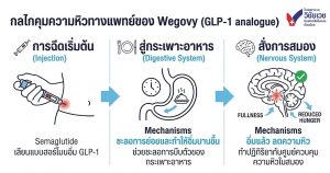 กลไกการทำงานของ Wegovy ไม่ใช่ยาลดความอ้วนที่กดประสาทส่วนกลางแบบในอดีต แต่เป็นการเข้าไปปรับสมดุลฮอร์โมนในร่างกาย เมื่อกระเพาะอาหารบีบตัวช้าลง อาหารจะอยู่ในกระเพาะนานขึ้น สมองจึงรับรู้ว่าร่างกายยังมีพลังงานเพียงพอ ทำให้เราไม่รู้สึกหิวจุกจิก และสามารถปรับลดปริมาณแคลอรี่ต่อวันลงได้อย่างราบรื่นครับ