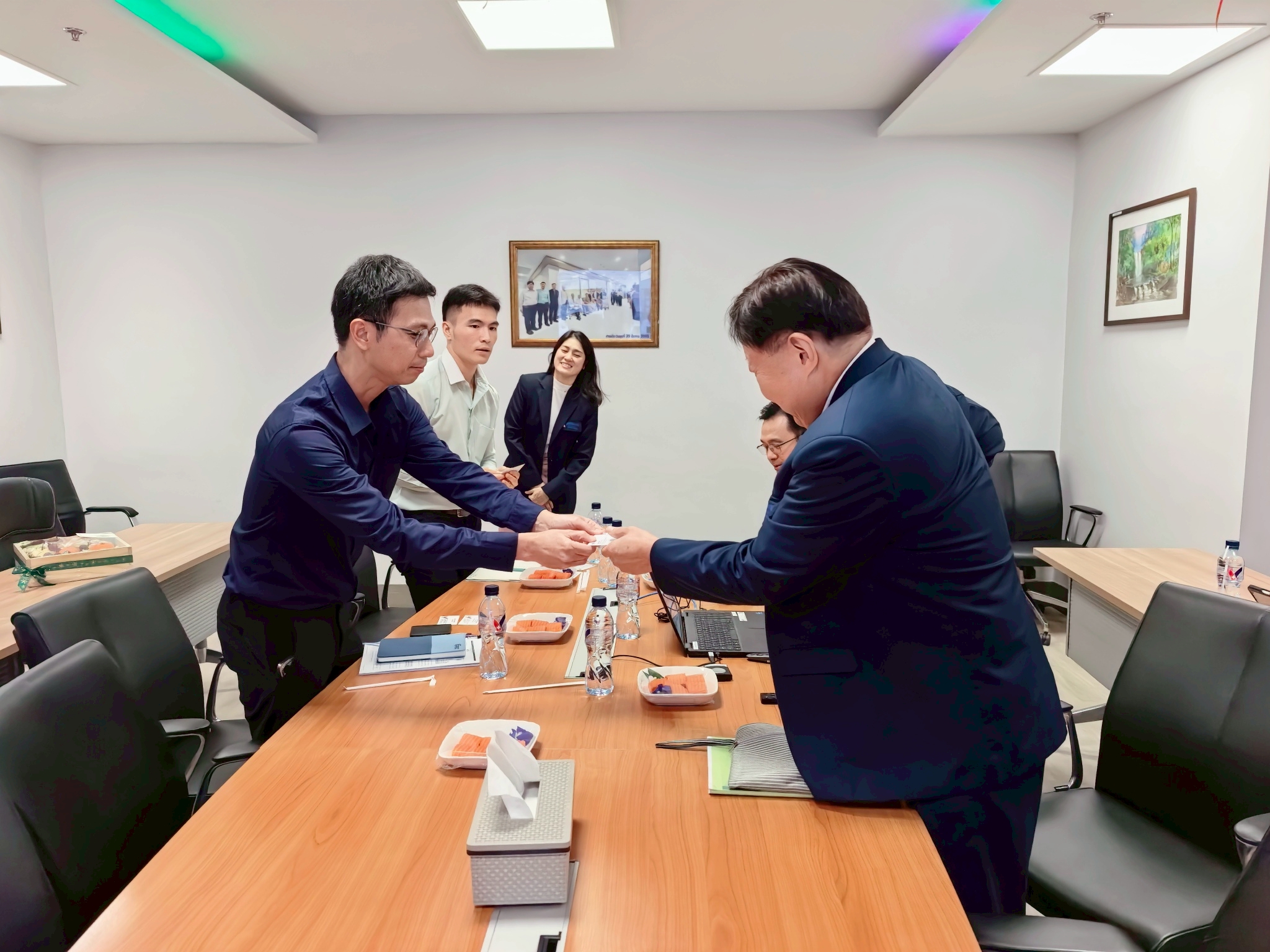 นพ.มงคล วณิชภักดีเดชา (กลางขวา) รองประธานเจ้าหน้าที่บริหาร และ ดร.ศักดา ตั้งจิตวัฒนากร (ขวา) ประธานเจ้าหน้าที่บริหารการเงิน บริษัท ศรีวิชัยเวชวิวัฒน์ จำกัด (มหาชน) หรือ VIH ให้การต้อนรับ คุณณัฐกร ศรีภูไฟ (กลางซ้าย) ผู้อำนวยการฝ่ายวิเคราะห์หลักทรัพย์ และ คุณธนัตถ์ กันตพรพงศ์ (ซ้าย) ผู้จัดการอาวุโสฝ่ายวิเคราะห์หลักทรัพย์ บริษัทหลักทรัพย์ แลนด์ แอนด์ เฮ้าส์ จำกัด (มหาชน) เนื่องในโอกาสเข้าเยี่ยมชมกิจการ (Company Visit)