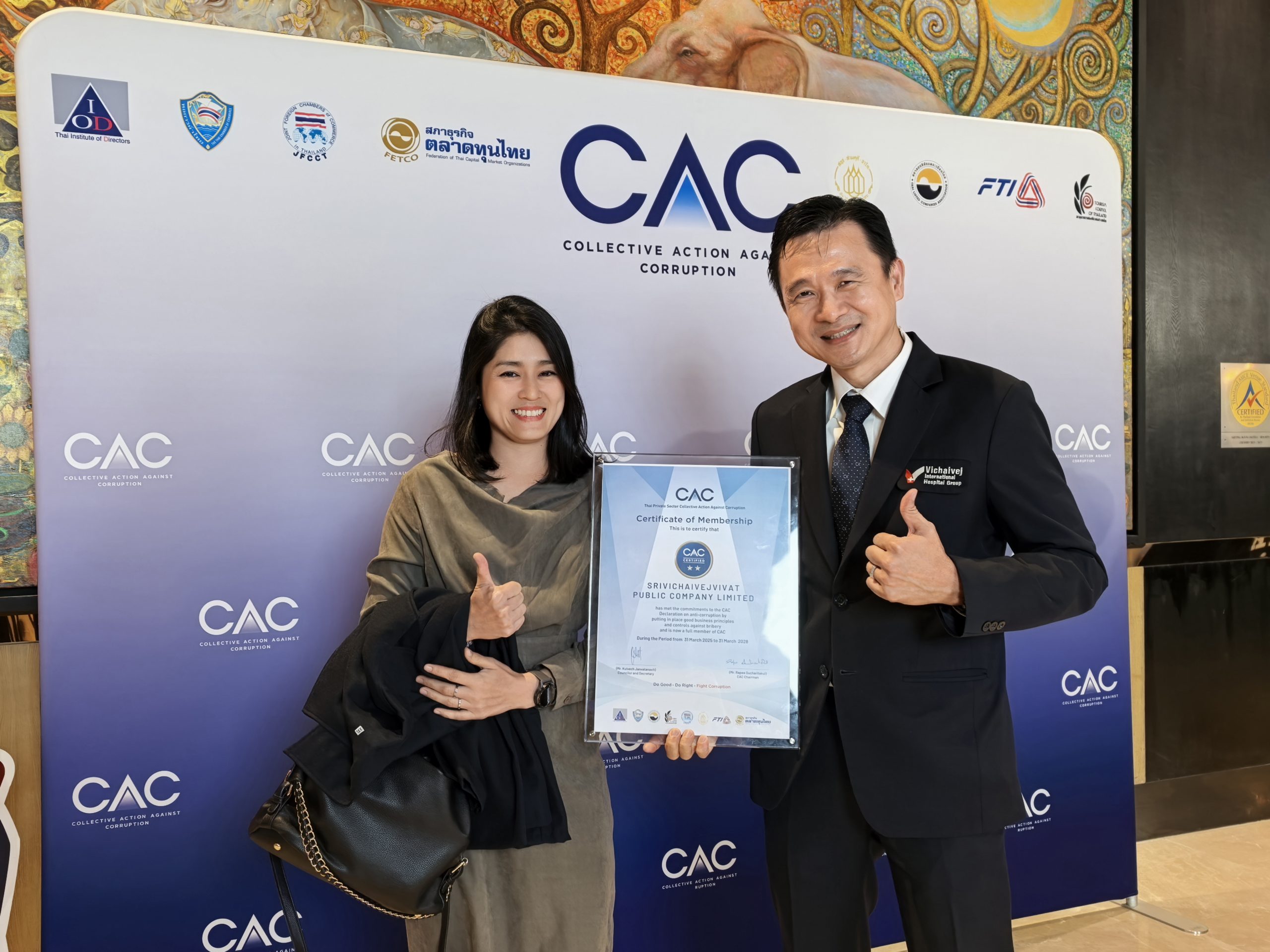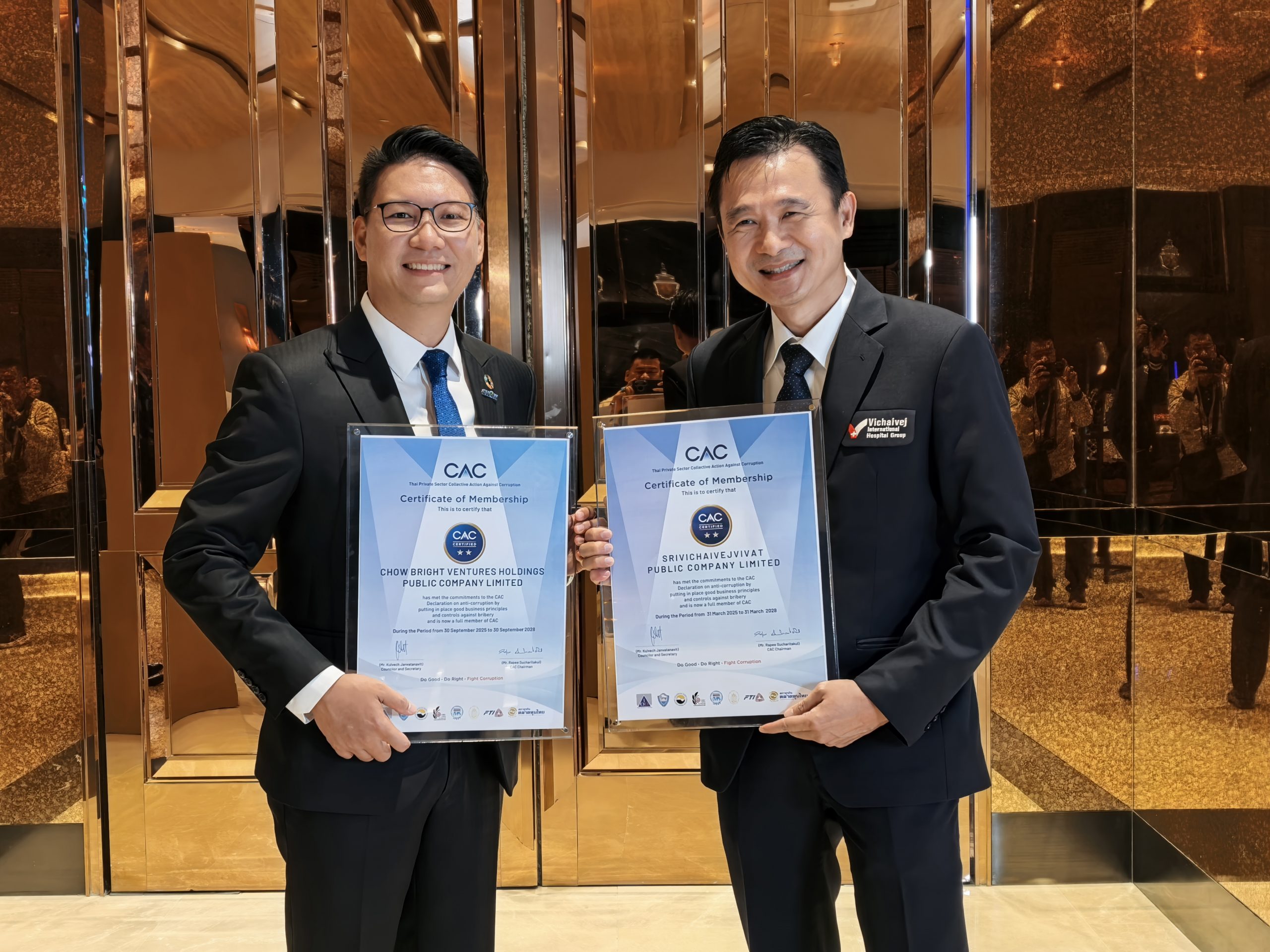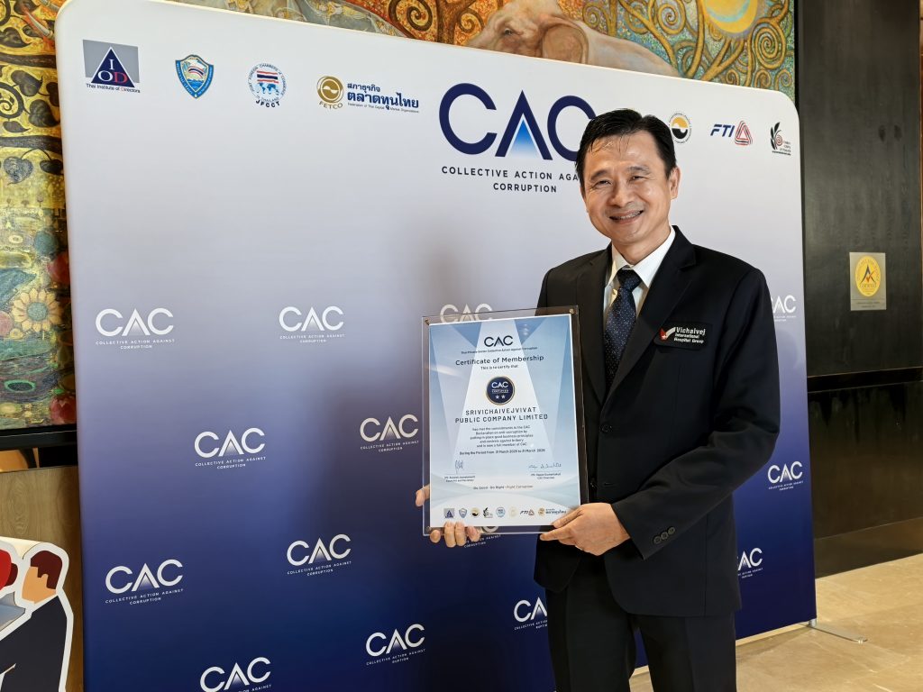 นพ.มงคล วณิชภักดีเดชา รองประธานเจ้าหน้าที่บริหาร บริษัท ศรีวิชัยเวชวิวัฒน์ จำกัด (มหาชน) หรือ VIH ผู้ให้บริการสถานพยาบาลภายใต้กลุ่มโรงพยาบาลวิชัยเวช อินเตอร์เนชั่นแนล เข้ารับประกาศนียบัตรรับรองสมาชิกแนวร่วมต่อต้านคอร์รัปชันของภาคเอกชนไทย (CAC)   สำหรับการดำเนินงานในไตรมาสที่ 2 ปี 2568 ซึ่งได้รับการต่ออายุการรับรองครั้งที่ 2 จากนางเกศรา มัญชุศรี ในฐานะกรรมการพิจารณาให้การรับรองจากแนวร่วมต่อต้านคอร์รัปชันของภาคเอกชนไทย (CAC) ในงาน “CAC Certification Ceremony 2025” ภายใต้หัวข้อ “CAC Incentive Pool” หรือ “ร่วมสร้างสิทธิประโยชน์แห่งความโปร่งใส เพื่อธุรกิจไทยยั่งยืน” ณ โรงแรมไฮแอท รีเจนซี่ กรุงเทพฯ เมื่อวันที่ 24 พฤศจิกายน 2568 ที่ผ่านมา สำหรับการรับรองดังกล่าวสะท้อนถึงความมุ่งมั่นของ VIH ในการยกระดับมาตรฐานธรรมาภิบาล ความโปร่งใส และการต่อต้านคอร์รัปชันอย่างจริงจังและต่อเนื่อง