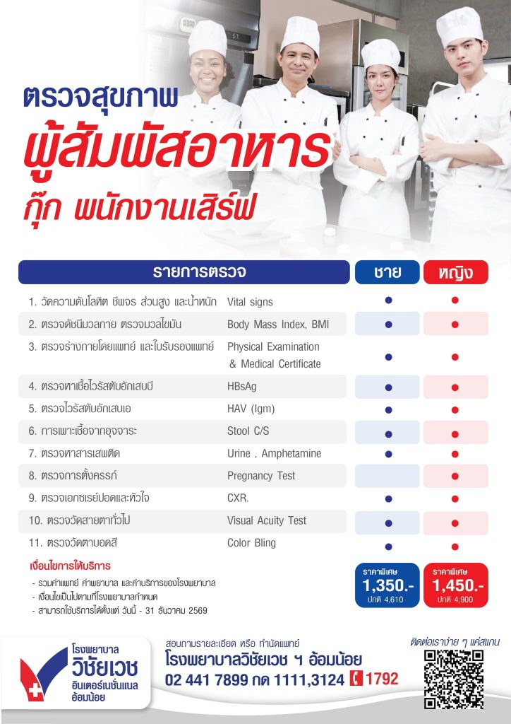 - ตรวจสุขภาพผู้สัมผัสอาหาร กุ๊ก พนักงานเสิร์ฟ