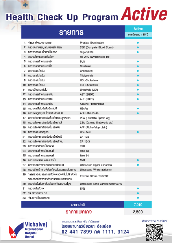- Health Check Up Program Active อายุน้อยกว่า 35 ปี